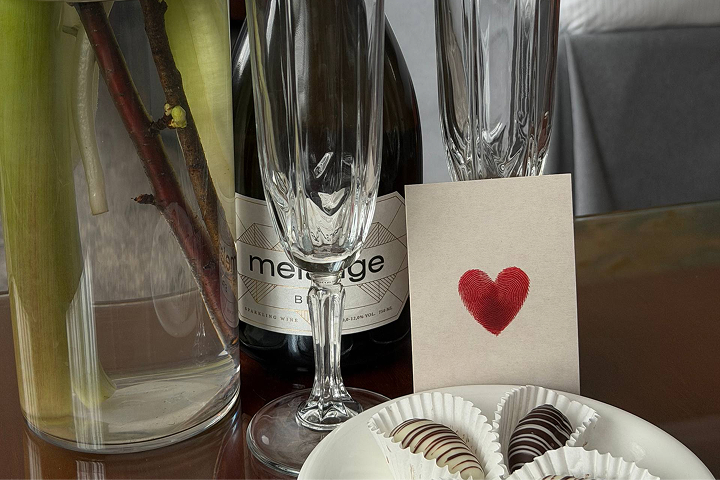 ● Комплимент в номер: бутылка игристого вина, ваза фруктов и десерт от шеф-повара;